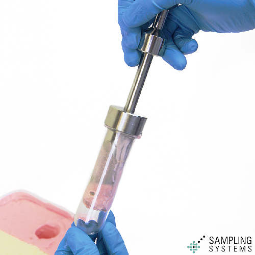 - サンプラーを取り出し、排出ロッド(別売:8570A-700)をハンドル側から挿入し、採取物を排出します。