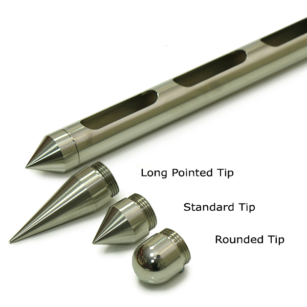 - 本体には標準の先端部が付属していますが、オプションで細く尖った先端と、丸い先端もございます。