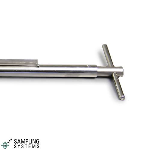 - ハンドルをさらに回転させ、スロット部を閉じたら、サンプラーを抜き取ります。