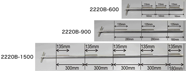 | 2220B-900 | 粘性粉末用ポケットサンプラー20ml 900mm長 | 900mm | 145mm | 3 | 20ml | 2.7kg |