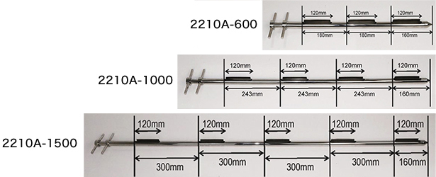 | 2210A-1500 | 粘性粉末用スロットサンプラー300ml 1500mm長 | 1550mm | 180mm | 5 | 300ml | 2.7kg |