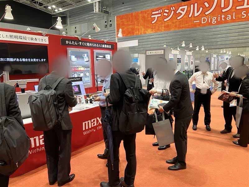 安定した照明環境を実現したシステム「iXAM Vision Inspector」や、ベルトコンベア上でAI正誤判定を行い、多くのご来場の方々に、関心、ご質問をいただきました。