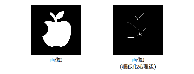 2値画像の白画素領域を外側から削って、幅1画素の線画像に変換する処理である