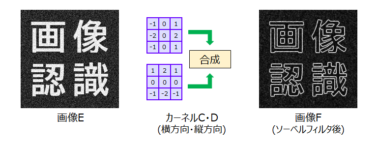 積和演算を使用するフィルタ処理その3はソーベルフィルタです。
