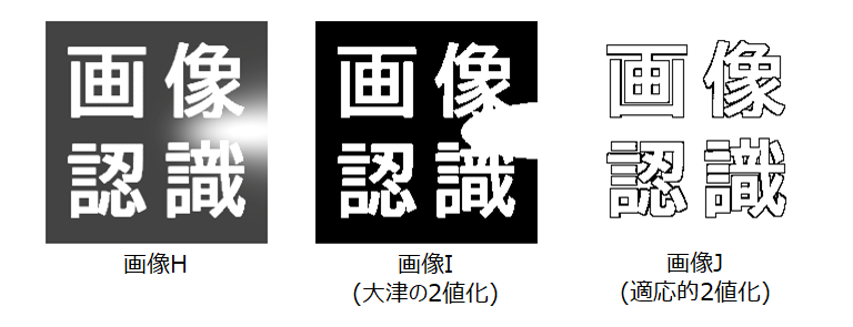 適応的2値化は、しきい値を画素ごとに求める手法です。