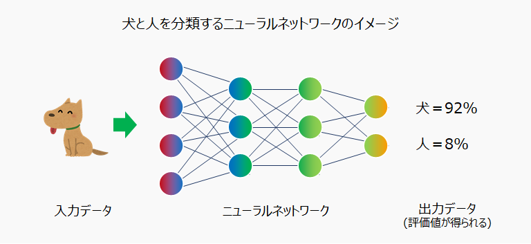 深層学習ではニューラルネットワークを用いて最適な重みデータを学習する。
