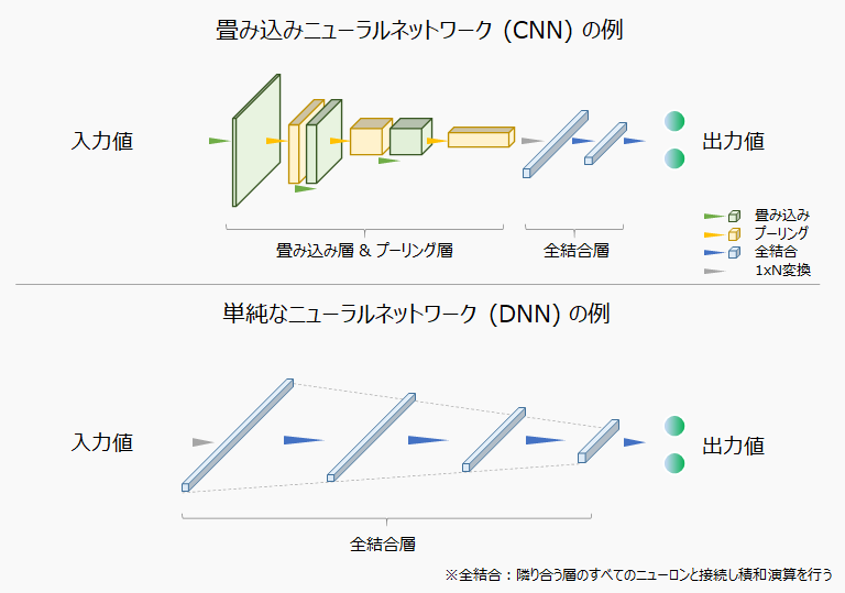 深層学習では、層をより深く積み重ねたディープニューラルネットワーク(DNN)を使って学習や推論を行います。