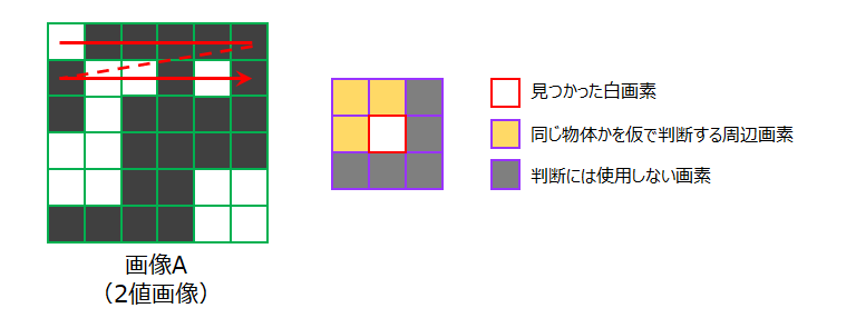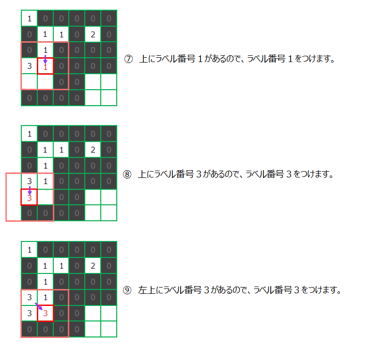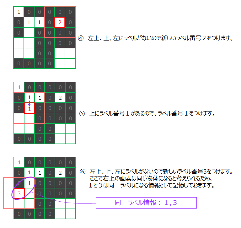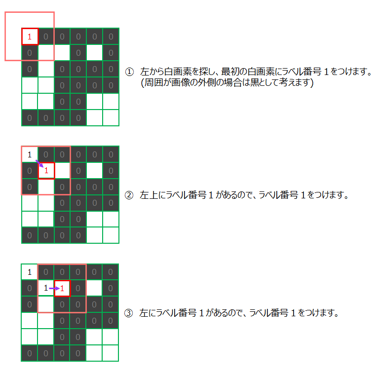 「画像A」について順番にラベリングの様子を見てみましょう。