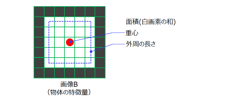 ラベリングによって複数の白い物体を個別に識別できるため、各物体毎の面積や重心、外周の長さなどを求める際に活用できます。
