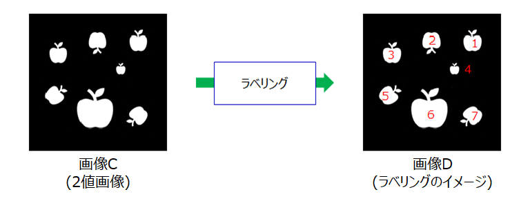 ラベリングは物体の特徴を抽出するための前処理として使われる。
