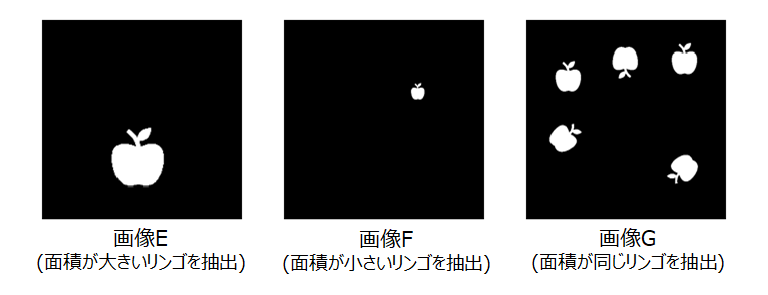 例えば、ラベル毎に求められる面積から、物体を大きさで分類・抽出することができます。