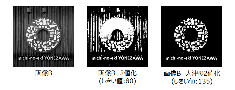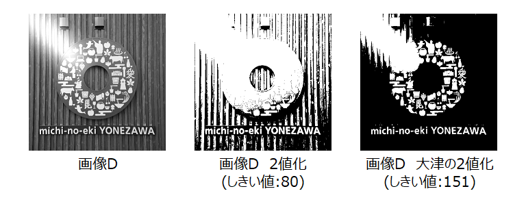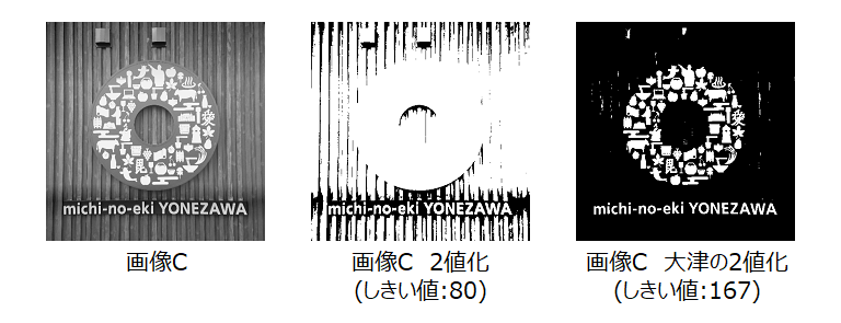 大津の2値化は、画像B/Cのように、明るさが変動した場合でも最適に2値化処理が可能です。