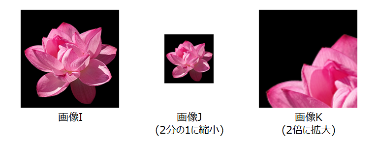 補間処理によって滑らかな拡大・縮小画像をつくることができる。