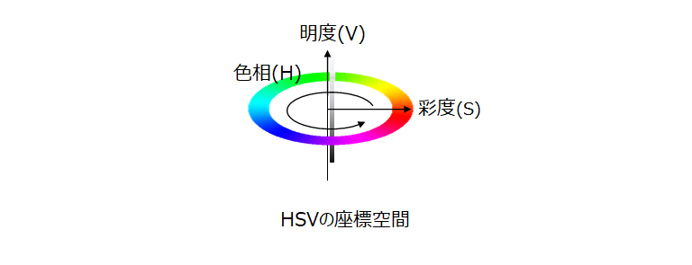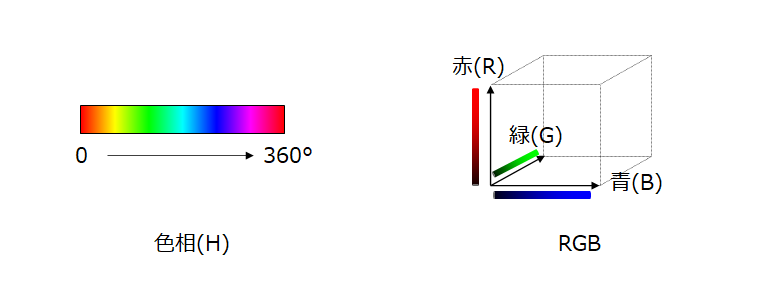RGBは、赤(Red)、緑(Green)、青(Blue)の要素の組み合わせに対し、HSVは、色相(Hue)、彩度(Saturation)、明度(Value)の組み合わせで表現します。