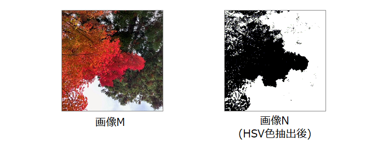最後に「画像M」にHSV色抽出をしてみましょう。