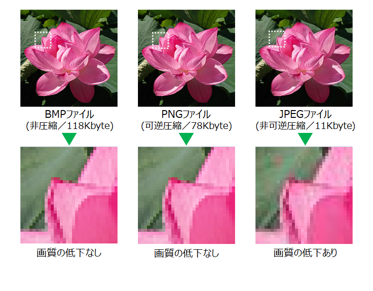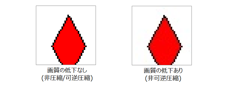 これは、保存するときの圧縮方式によるもので、非圧縮・可逆圧縮・非可逆圧縮の3種類の方式があります。