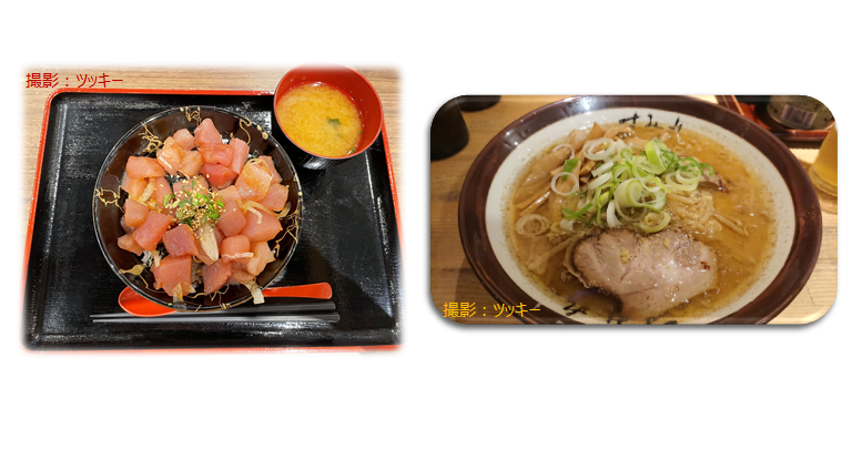 ボクは海鮮丼3種類とタコヤキ2種類とラーメンと中華料理をたくさん食べてきました~!!