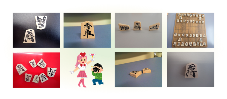 まずは将棋の表面の8種類の画像データの収集から始めます。