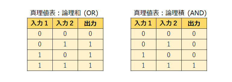 論理演算では数値の意味を真・偽と表現します。画素値に置き換えると真を1(白)、偽を0(黒)として扱います。