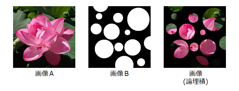 白黒画像との論理積はマスク処理と呼ばれ、よく使われる方法である