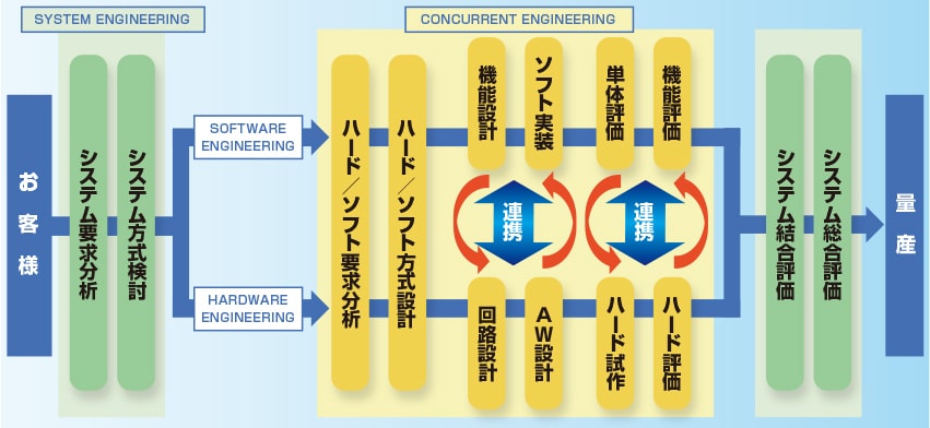 マクセルフロンティアの設計・開発プロセスは、ハードウェアとソフトウェアの平行開発による「コンカレント・エンジニアリング」です。