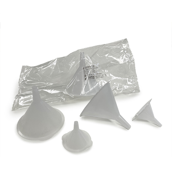 | 8370H-100 | HDPE(白) 液体用漏斗 注ぎ口外径100mm | 非滅菌 | HDPE | 高さ:103mm、上部内径(ツバ含む):100mm(117mm)、排出口外径(先端部):17mm(11mm)、重量:16g | 50 |
