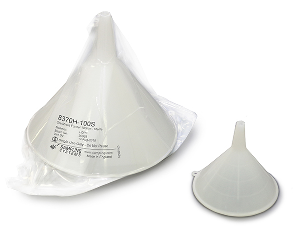 | 8370H-100S | HDPE(白) 液体用漏斗 注ぎ口外径100mm | 滅菌 | HDPE | 高さ:103mm、上部内径(ツバ含む):100mm(117mm)、排出口外径(先端部):17mm(11mm)、重量:16g | 50 |