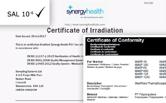 滅菌ディスポーザブル製品は、ガンマ線照射による滅菌処理を行っており、当該製品の証明書を発行しています。