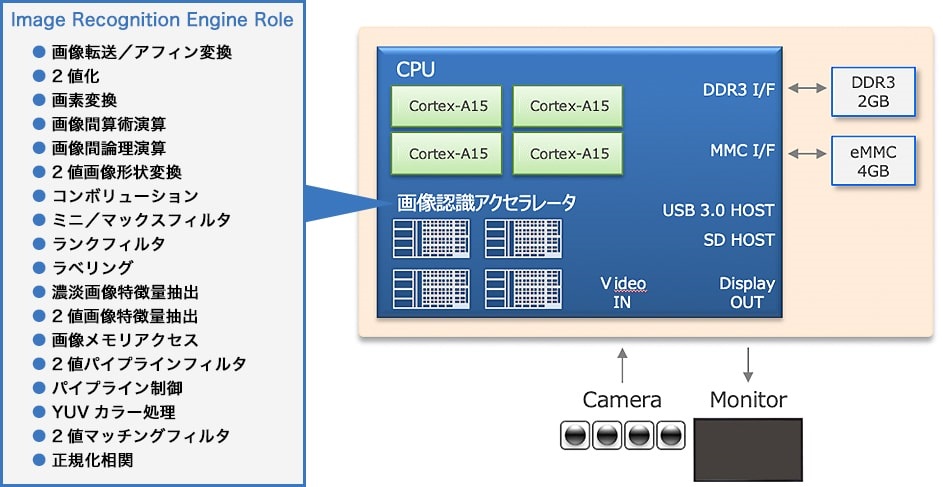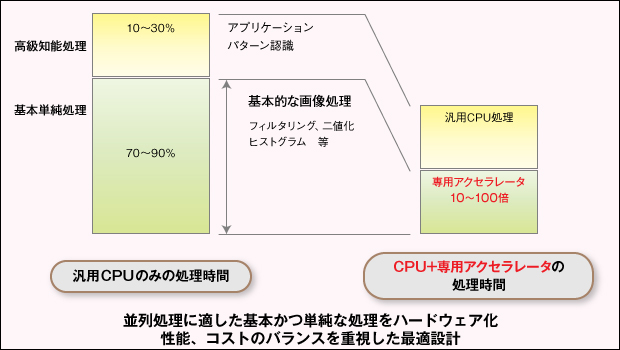 マクセルフロンティアの画像認識ソリューションでは、負荷の高い画像処理演算を「専用の画像処理アクセラレータ」で処理しています。