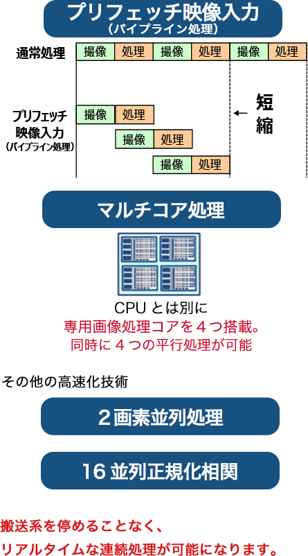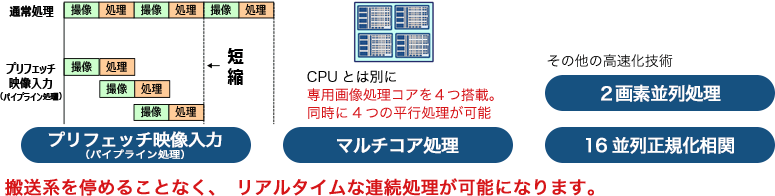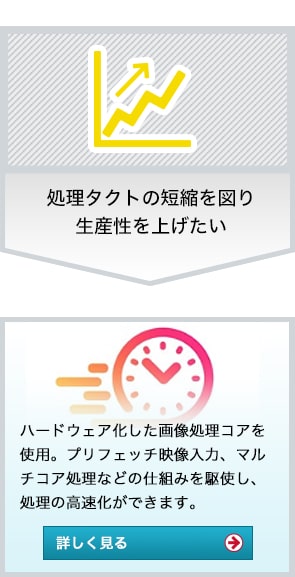 マクセルフロンティアの画像処理機器ではハード化した画像処理を実装し、さまざまな仕組みで処理高速化を実現しております。