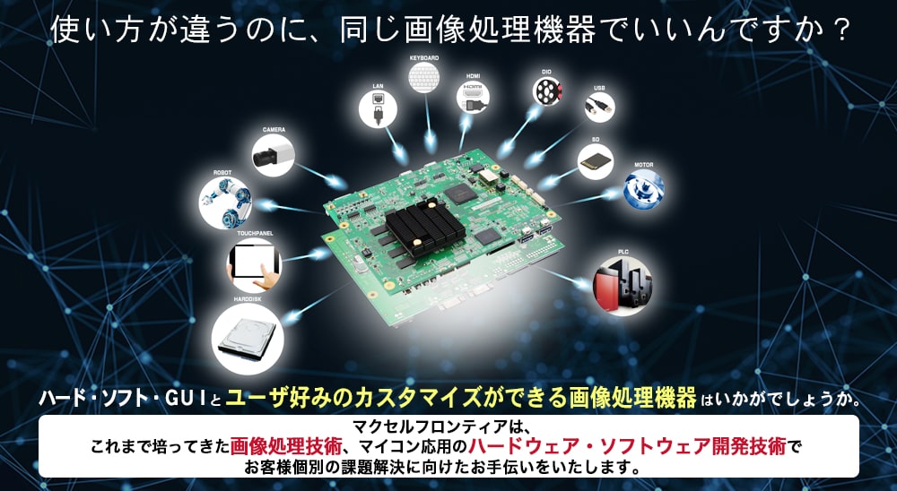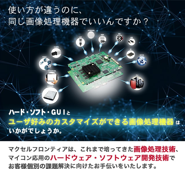 マクセルフロンティアでは、小型画像処理ボードの開発や、弊社製品のカスタマイズも承ります。