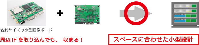 ベースとなるボードに、必要なインターフェースを追加してもなお、小型に設計することが可能です。