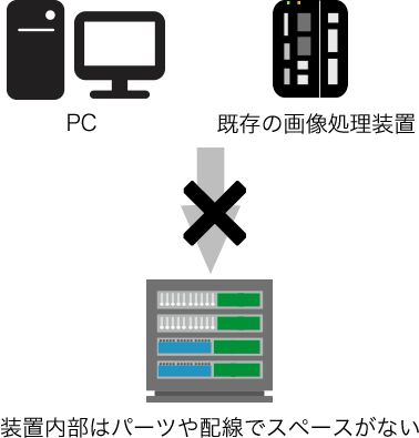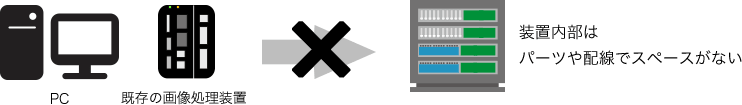 装置内のスペースが限られており、PCや既存の画像処理機器を設置できない。