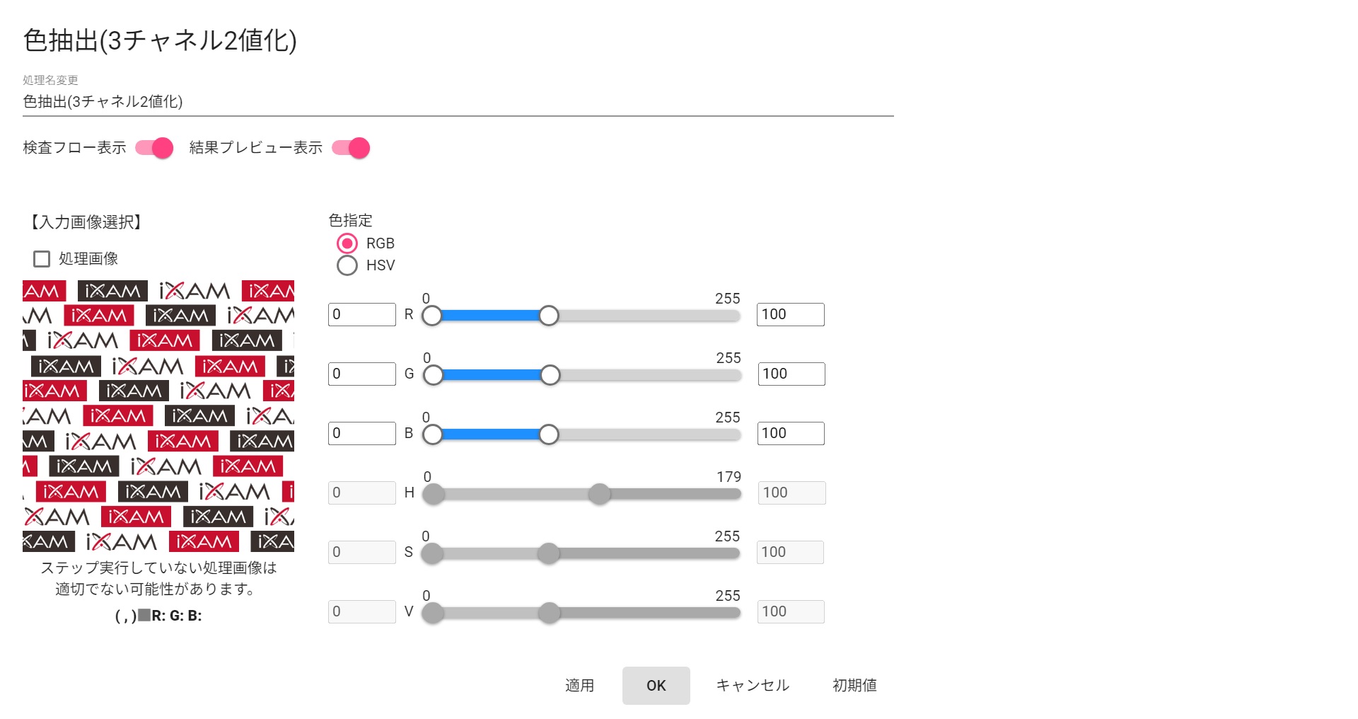 | 部品名称 | 色抽出(3チャネル2値化) | |