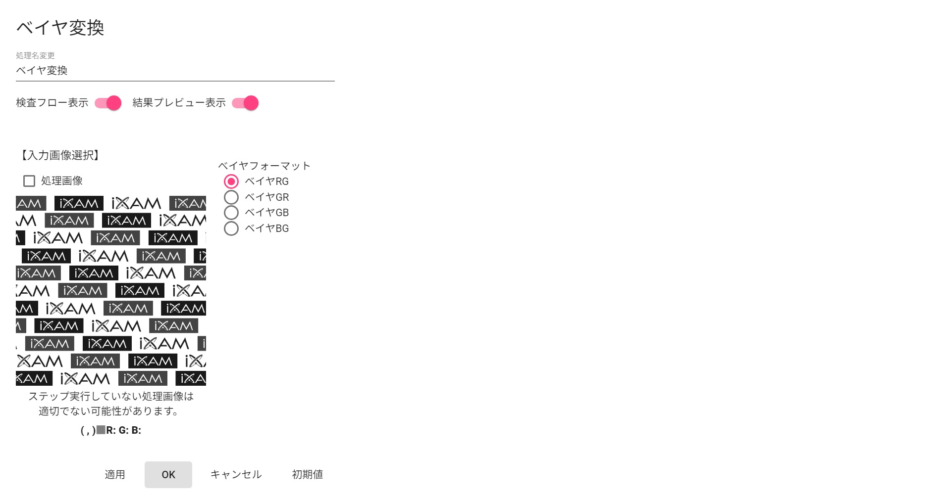 | プロパティ項目 | ベイヤフォーマット | ベイヤ配列のフォーマットです