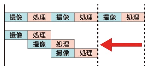 処理高速化のさまざまな仕組みとして、プリフェッチ映像入力やマルチコア処理、2画素並列処理などを使用できます。