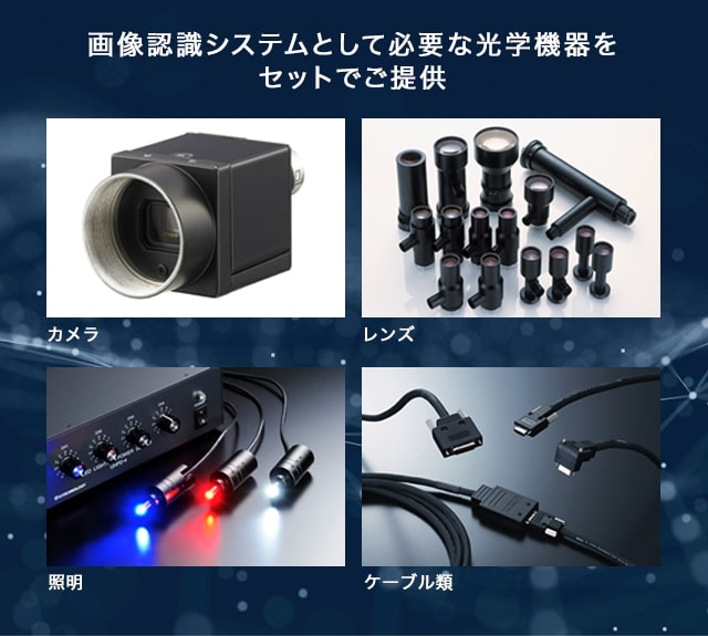 - 弊社画像認識製品とセットだけではなく、単品販売もいたします。又、カスタマイズも可能ですのでお気軽にご相談ください。(一部機器ではお受けできない場合がありますのでご注意ください)