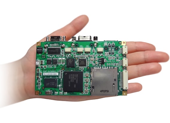 ・名刺サイズに、カメラ入力、LAN、RS-232C、I/O、SD映像出力を搭載